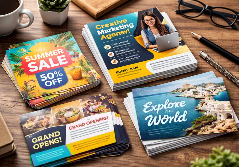 Available in a variety of sizes with a wide range of folding options, Flyers and Brochures are ideal for showcasing all types or products and services.